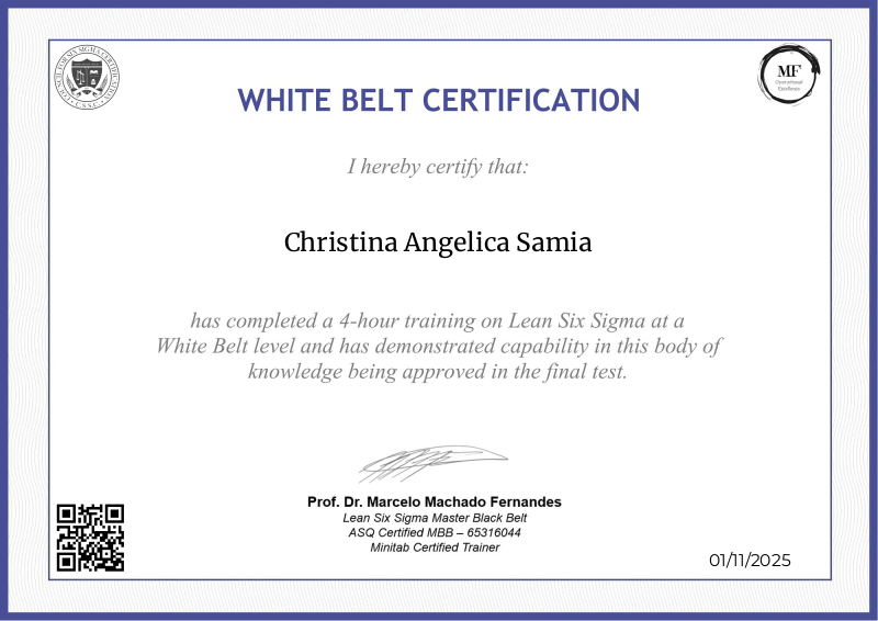 Unlocking the foundational principles of Lean Six Sigma, the White Belt certification offered by MF OPEX, led by Professor Marcelo Fernandes, stands as a beacon of excellence in operational training. Through a comprehensive curriculum blending theory with practical application, participants gain invaluable insights into waste reduction, variation management, and continuous improvement. Professor Fernandes' expertise infuses the program with industry-leading practices, equipping learners with the knowledge and skills to drive tangible improvements within their organizations. Serving as a catalyst for professional growth, this certification paves the way for further advancement in the field of operational excellence, empowering individuals to become agents of positive change in their respective industries.