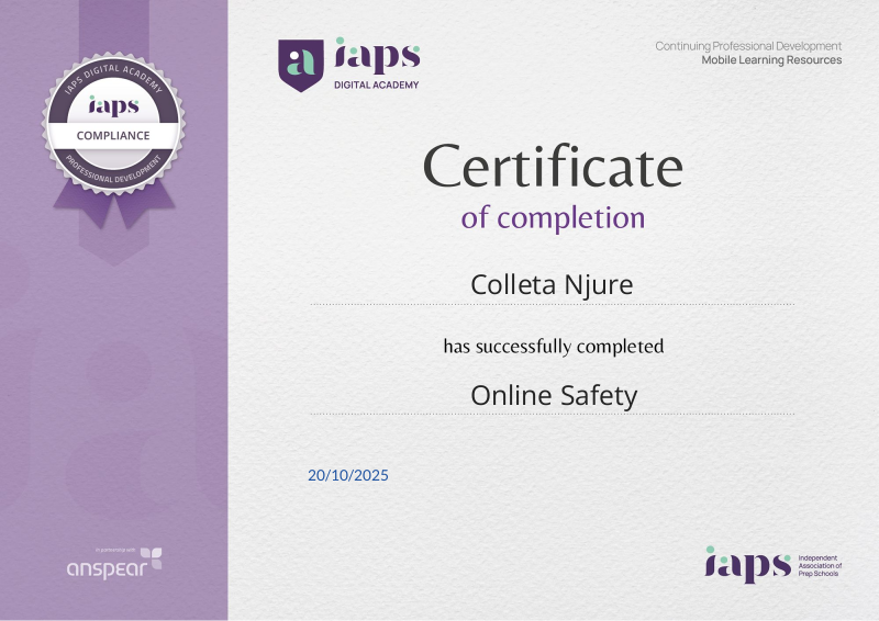 Awarded for completing the Online Safety CPD course from the IAPS Digital Academy.