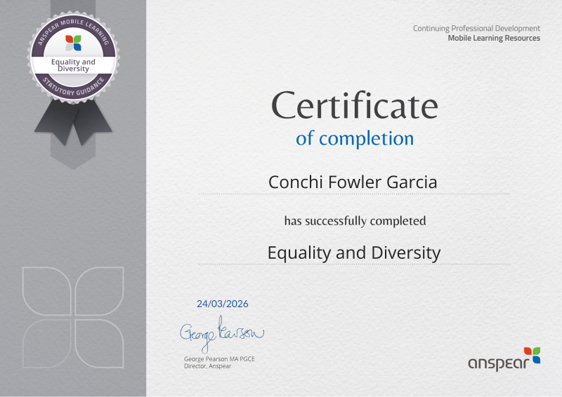 Awarded for completing the Equality and Diversity CPD course from Anspear.