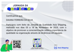 Este badge foi concedido aos colaboradores que participaram da Jornada da Qualidade 2025, evento promovido pelo Departamento de Qualidade da Asia Shipping.