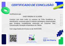 Esta badge certifica a conclusão da Trilha Excelência em Atendimento. O participante desenvolveu habilidades fundamentais para atuar com empatia, proatividade, visão consultiva e excelência no relacionamento com clientes internos e externos.