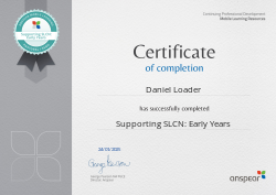 Awarded for completing the Supporting SLCN: Early Years CPD course from Anspear.