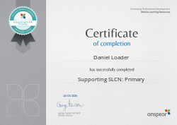 Awarded for completing the Supporting SLCN: Primary CPD course from Anspear.