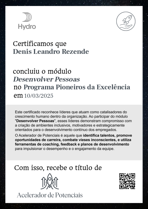 Esta badge reconhece líderes que atuam como catalisadores do crescimento humano dentro da organização. Ao participar do módulo "Desenvolver Pessoas", esses líderes demonstram compromisso com a criação de ambientes inclusivos, motivadores e estrategicamente orientados para o desenvolvimento contínuo dos colaboradores.
