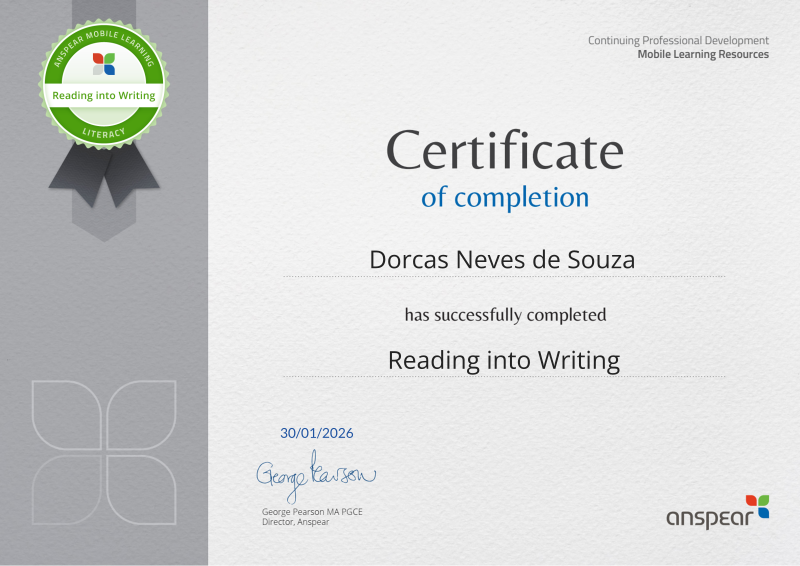 Awarded for completing the Reading into Writing CPD course from Anspear.