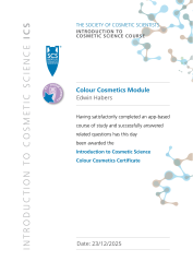 Completed the Colour Cosmetics module on the Society of Cosmetic Scientists (SCS) Introduction to Cosmetic Science (ICS) course and passed the module test.