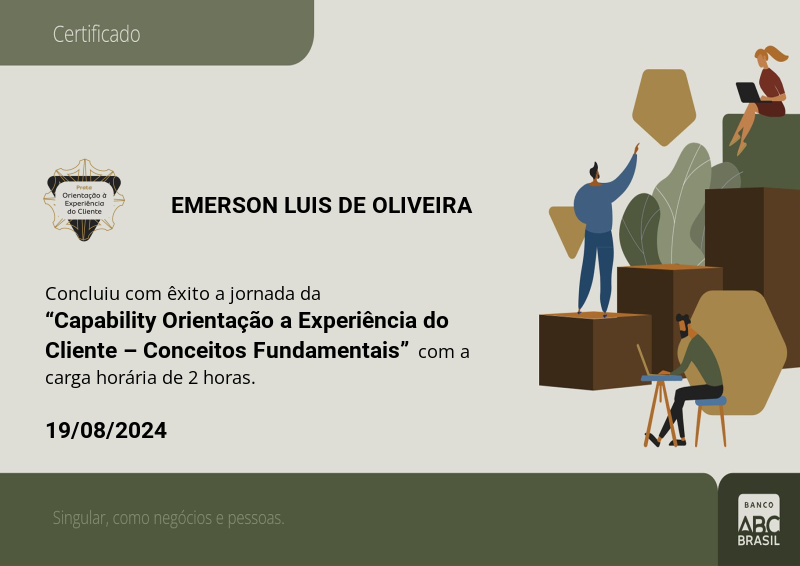 Essa medalha certifica os conhecimentos adquiridos para os conceitos fundamentais da capability Orientação a Experiência do Cliente.