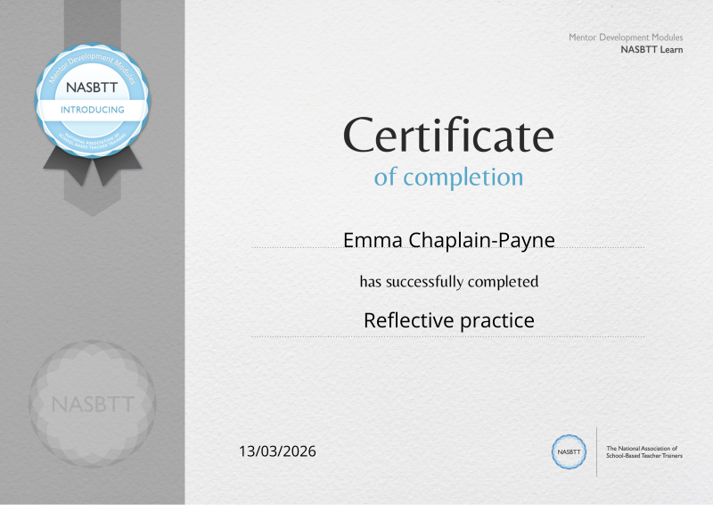In this module, mentors will be supported in their own reflective practice with a view to modelling expertise to their mentees.