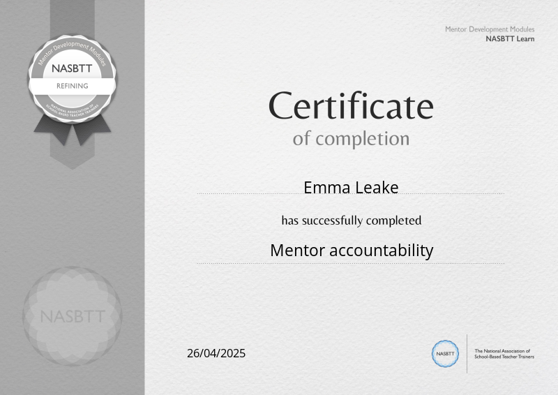Awarded for passing the end of module test of the online/mobile course Mentor accountability.