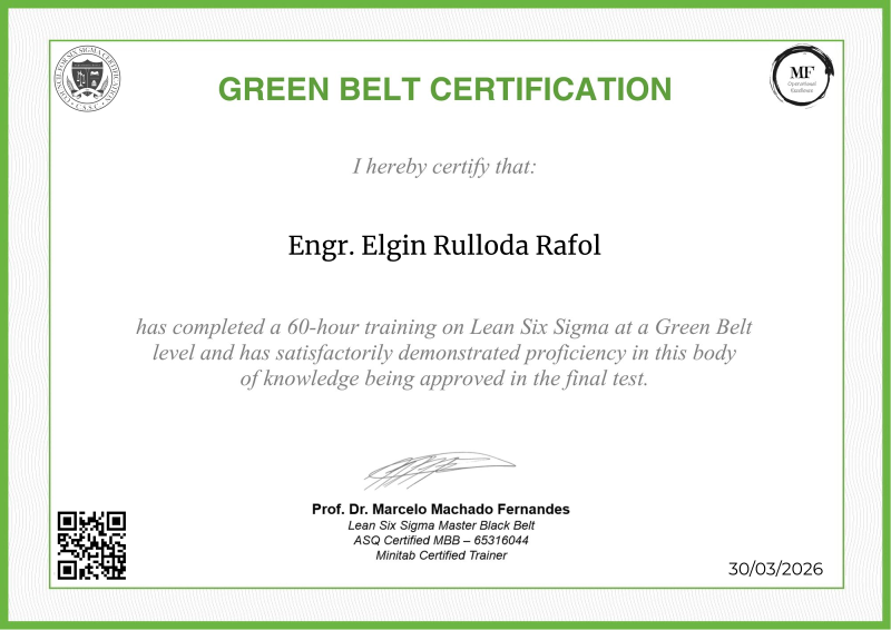 Exploring the principles of Lean Six Sigma, the Green Belt certification offered by MF OPEX, under the mentorship of Professor Marcelo Fernandes, represents a pivotal step forward in operational excellence training. Equipped with an extensive curriculum blending advanced theories with hands-on application, participants not only deepen their understanding of process optimization, advanced data analysis, and project leadership but also become adept at spearheading Lean Six Sigma projects. Professor Fernandes' esteemed guidance enriches the program with cutting-edge methodologies, empowering learners to drive substantial improvements within their organizations. Serving as a significant milestone in professional development, this certification not only qualifies individuals to lead larger-scale projects but also instills the confidence and expertise needed to enact transformative change across diverse industry landscapes.