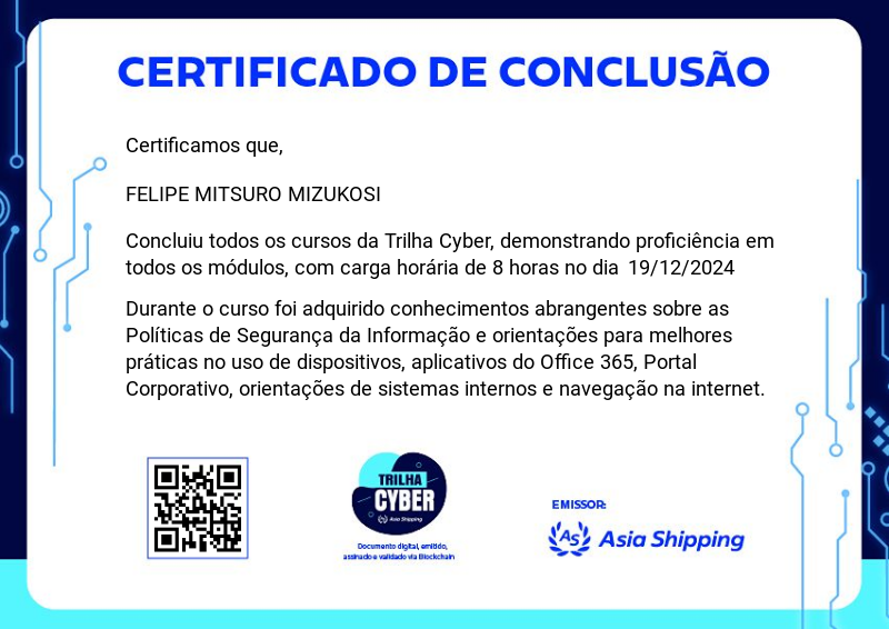 A Trilha Cyber é um dos badges do programa de certificação da Asia Shipping. Ela aborda as melhores práticas de uso dos sistemas internos e do e-mail corporativo, reforçando a segurança e a eficiência no ambiente digital.