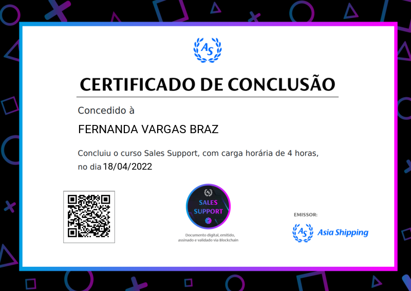 O curso Sales Support é mais uma badge de lançamento do programa de certificação da Asia Shipping. Ele aborda informações importantes para todo time comercial, com os pontos mais relevantes da rotina diária, principalmente com base nos procedimentos e ferramentas atuais da companhia. Ao longo do curso conheceremos as principais funções do Sales Support, sendo a principal e a mais importante, o atendimento com qualidade ao cliente. A utilização dessas ferramentas é essencial para uma comunicação assertiva de todo o time.
