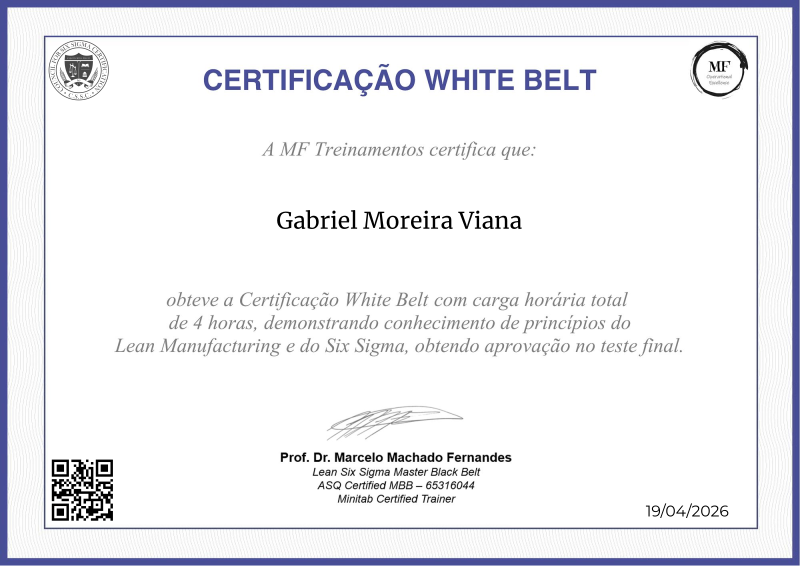 Desbloqueando os princípios fundamentais do Lean Six Sigma, a certificação White Belt oferecida pela MF OPEX, liderada pelo Professor Marcelo Fernandes, destaca-se como um farol de excelência em treinamento operacional. Através de um currículo abrangente que combina teoria com aplicação prática, os participantes adquirem insights inestimáveis sobre redução de desperdícios, gestão de variação e melhoria contínua. A expertise do Professor Fernandes infunde o programa com práticas líderes do setor, equipando os aprendizes com o conhecimento e as habilidades necessárias para impulsionar melhorias tangíveis dentro de suas organizações. Servindo como catalisador para o crescimento profissional, esta certificação abre caminho para avanços adicionais no campo da excelência operacional, capacitando os indivíduos a se tornarem agentes de mudança positiva em suas respectivas indústrias.