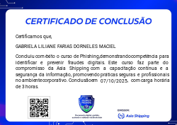 O badge de treinamento em Phishing faz parte do programa de certificação da Asia Shipping e capacita os participantes a reconhecer e evitar tentativas de fraude digital. Com foco em práticas seguras de comunicação e proteção de dados no ambiente corporativo, o treinamento prepara os colaboradores para identificar ameaças e fortalecer a segurança da informação na empresa.