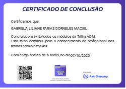 Esta badge é concedida aos colaboradores que completaram com sucesso a Trilha ADM, que teve como objetivo preparar o colaborador para atuar com excelência em rotinas administrativas essenciais.