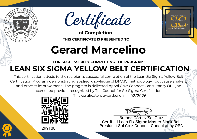Sol Cruz Connect Consultancy OPC is an Accredited Six Sigma Training and Certification Provider by The Council for Six Sigma Certification.