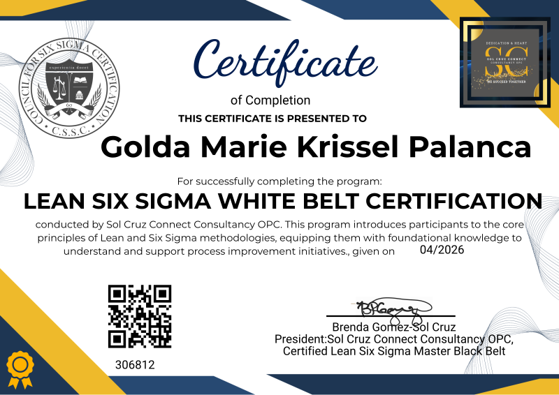 The Lean Six Sigma White Belt Certification introduces participants to the core principles of Lean and Six Sigma methodologies—equipping them with foundational knowledge to understand and support process improvement initiatives.