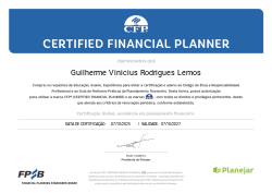 Símbolo de excelência em planejamento financeiro, o selo CFP® - Certified Financial Planner é a mais respeitada certificação internacional de distinção, garantido ao profissional certificado o reconhecimento de suas habilidades e competências na atividade de planejador financeiro pessoal e familiar por parte de seus clientes, parceiros e do mercado.