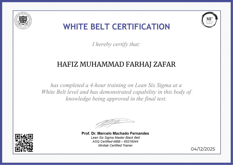 Unlocking the foundational principles of Lean Six Sigma, the White Belt certification offered by MF OPEX, led by Professor Marcelo Fernandes, stands as a beacon of excellence in operational training. Through a comprehensive curriculum blending theory with practical application, participants gain invaluable insights into waste reduction, variation management, and continuous improvement. Professor Fernandes' expertise infuses the program with industry-leading practices, equipping learners with the knowledge and skills to drive tangible improvements within their organizations. Serving as a catalyst for professional growth, this certification paves the way for further advancement in the field of operational excellence, empowering individuals to become agents of positive change in their respective industries.