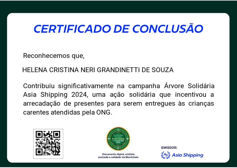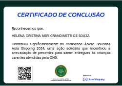 Esta badge digital reconhece a sua participação na Campanha Árvore Solidária de Natal 2024 da Asia Shipping.