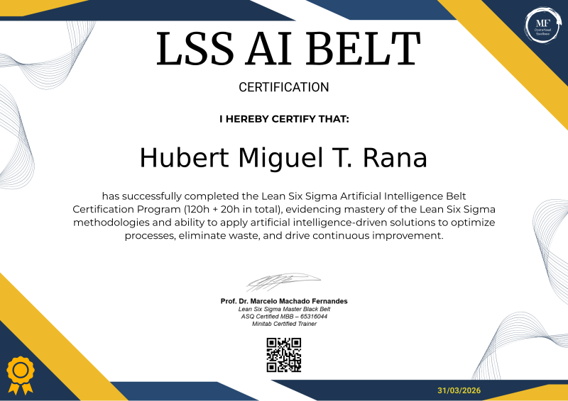 The Lean Six Sigma Artificial Intelligence Belt is a specialized certification that integrates the core principles of Lean Six Sigma with the cutting-edge capabilities of artificial intelligence. This certification equips professionals with the tools to analyze data, optimize processes, and eliminate waste more effectively through AI-driven insights. By blending statistical methodologies with machine learning and automation, individuals holding this certification can drive continuous improvement, enhance operational efficiency, and deliver measurable results in complex environments, leveraging technology to solve problems faster and with greater precision.