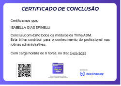 Esta badge é concedida aos colaboradores que completaram com sucesso a Trilha ADM, que teve como objetivo preparar o colaborador para atuar com excelência em rotinas administrativas essenciais.