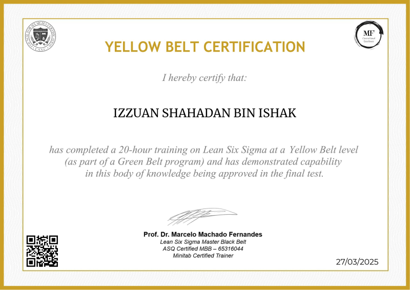 Delving into the intermediate principles of Lean Six Sigma, the Yellow Belt certification provided by MF OPEX, guided by Professor Marcelo Fernandes, marks a significant progression in operational excellence training. Through a meticulously structured curriculum blending advanced theories with practical application, participants deepen their understanding of process optimization, advanced data analysis, and project leadership. Professor Fernandes' renowned expertise enriches the program with cutting-edge methodologies, empowering learners to spearhead impactful improvements within their organizations. Serving as a pivotal milestone in professional development, this certification not only opens doors to larger-scale projects but also fosters the confidence and skills needed to drive transformative change across diverse industry landscapes.