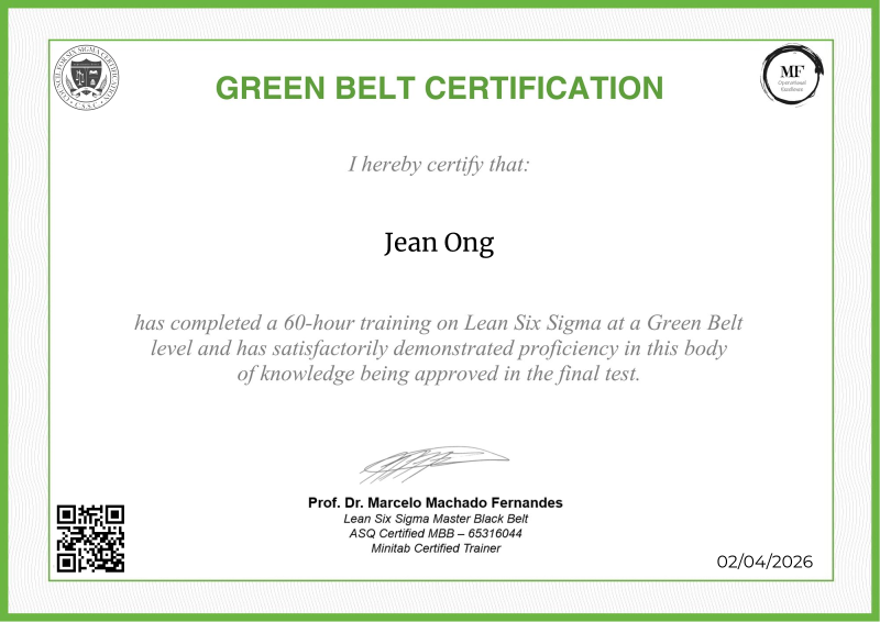 Exploring the principles of Lean Six Sigma, the Green Belt certification offered by MF OPEX, under the mentorship of Professor Marcelo Fernandes, represents a pivotal step forward in operational excellence training. Equipped with an extensive curriculum blending advanced theories with hands-on application, participants not only deepen their understanding of process optimization, advanced data analysis, and project leadership but also become adept at spearheading Lean Six Sigma projects. Professor Fernandes' esteemed guidance enriches the program with cutting-edge methodologies, empowering learners to drive substantial improvements within their organizations. Serving as a significant milestone in professional development, this certification not only qualifies individuals to lead larger-scale projects but also instills the confidence and expertise needed to enact transformative change across diverse industry landscapes.