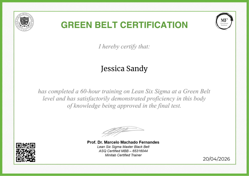 Exploring the principles of Lean Six Sigma, the Green Belt certification offered by MF OPEX, under the mentorship of Professor Marcelo Fernandes, represents a pivotal step forward in operational excellence training. Equipped with an extensive curriculum blending advanced theories with hands-on application, participants not only deepen their understanding of process optimization, advanced data analysis, and project leadership but also become adept at spearheading Lean Six Sigma projects. Professor Fernandes' esteemed guidance enriches the program with cutting-edge methodologies, empowering learners to drive substantial improvements within their organizations. Serving as a significant milestone in professional development, this certification not only qualifies individuals to lead larger-scale projects but also instills the confidence and expertise needed to enact transformative change across diverse industry landscapes.