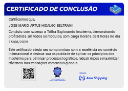 A Trilha Explorando Incoterms inclui elementos relacionados ao comércio internacional, como ícones representando diferentes termos de Incoterms, símbolos de negócios globais ou elementos que destacam a importância do entendimento dos Incoterms para profissionais envolvidos em transações comerciais internacionais. Essa badge serve como um símbolo de conquista e conhecimento na área de comércio internacional e logística.