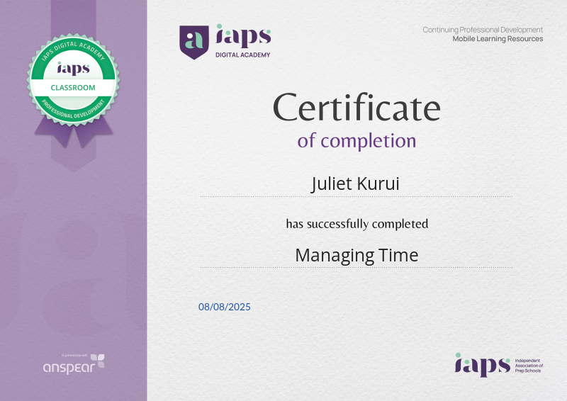 Awarded for completing the Managing Time CPD course from the IAPS Digital Academy.