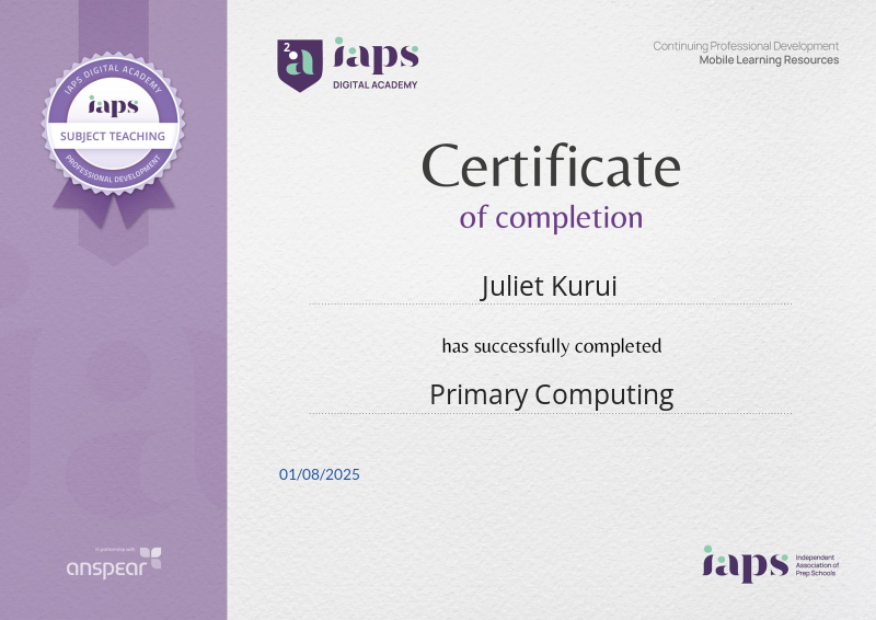 Awarded for completing the Primary Computing CPD course from the IAPS Digital Academy.