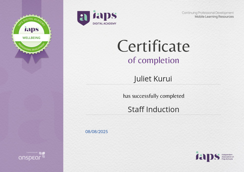 Awarded for completing the Staff Induction CPD course from the IAPS Digital Academy.