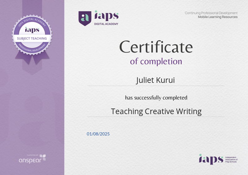 Awarded for completing the Teaching Creative Writing CPD course from the IAPS Digital Academy.