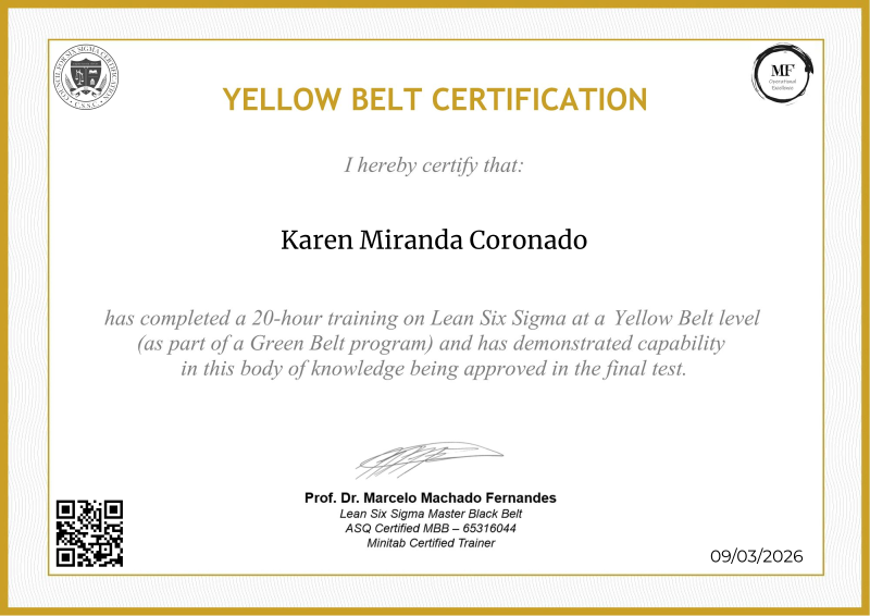 Delving into the intermediate principles of Lean Six Sigma, the Yellow Belt certification provided by MF OPEX, guided by Professor Marcelo Fernandes, marks a significant progression in operational excellence training. Through a meticulously structured curriculum blending advanced theories with practical application, participants deepen their understanding of process optimization, advanced data analysis, and project leadership. Professor Fernandes' renowned expertise enriches the program with cutting-edge methodologies, empowering learners to spearhead impactful improvements within their organizations. Serving as a pivotal milestone in professional development, this certification not only opens doors to larger-scale projects but also fosters the confidence and skills needed to drive transformative change across diverse industry landscapes.