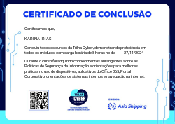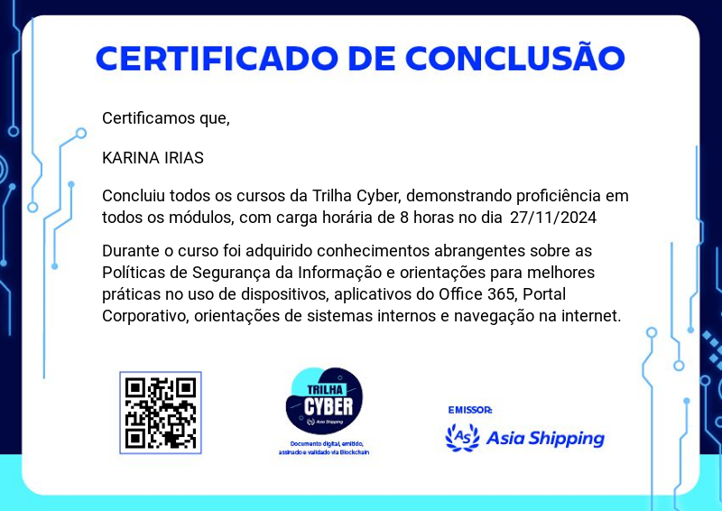 A Trilha Cyber é um dos badges do programa de certificação da Asia Shipping. Ela aborda as melhores práticas de uso dos sistemas internos e do e-mail corporativo, reforçando a segurança e a eficiência no ambiente digital.
