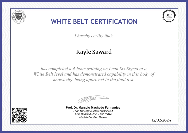 Unlocking the foundational principles of Lean Six Sigma, the White Belt certification offered by MF OPEX, led by Professor Marcelo Fernandes, stands as a beacon of excellence in operational training. Through a comprehensive curriculum blending theory with practical application, participants gain invaluable insights into waste reduction, variation management, and continuous improvement. Professor Fernandes' expertise infuses the program with industry-leading practices, equipping learners with the knowledge and skills to drive tangible improvements within their organizations. Serving as a catalyst for professional growth, this certification paves the way for further advancement in the field of operational excellence, empowering individuals to become agents of positive change in their respective industries.