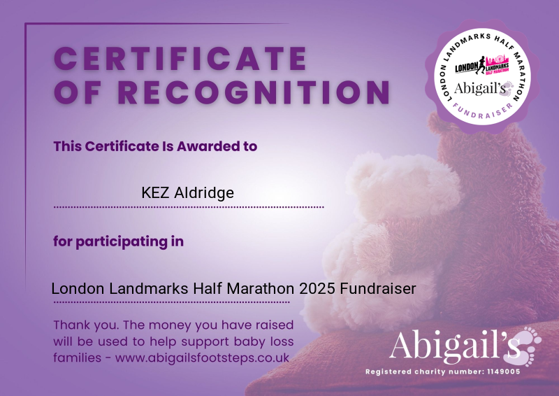 Successfully completed the London Landmarks Half Marathon 2025 and raised funds and awareness for Abigail's Footsteps. Thank you for all your hard work and support.