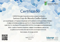 Este curso de capacitação tem como objetivo padronizar os procedimentos de exames médicos e abordar os desafios da avaliação da deficiência dentro do Instituto Federal do Maranhão (IFMA). A falta de uma metodologia unificada gera a necessidade de capacitar os profissionais médicos para assegurar a uniformidade e qualidade nos exames médicos realizados. Este curso proporcionará mais segurança jurídica ao IFMA e aprimorará o atendimento aos servidores. Serão abordados as melhores práticas e o uso do Índice Brasileiro de Funcionalidade (IFBrA) para a avaliação de incapacidade.
