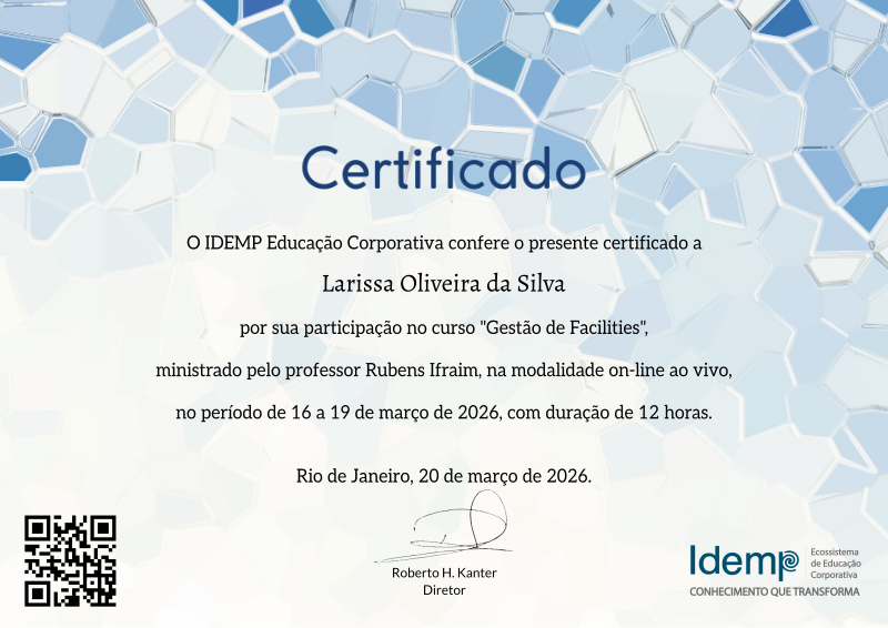 Ao longo do curso, você se desenvolverá os conhecimentos no perfil do novo profissional de facilities, como que essa área se relaciona dentro do contexto das organizações de qualquer tamanho, tanto publicas como privadas.