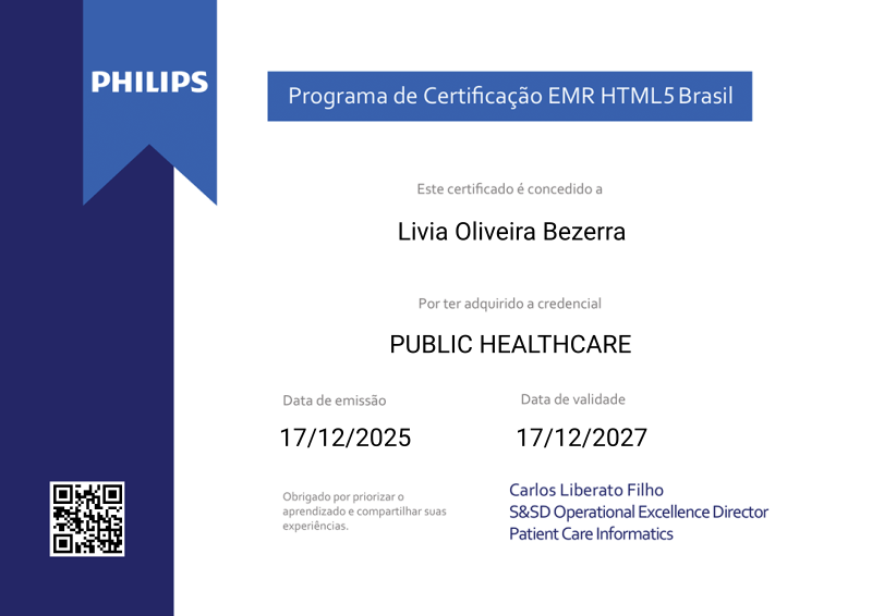 A credencial PROFESSIONAL PUBLIC HEALTHCARE contém uma avaliação, específica para o Brasil, abrangendo os processos do sistema público de saúde brasileiro - SUS.