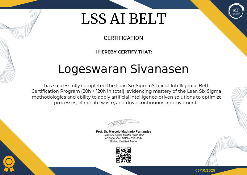 The Lean Six Sigma Artificial Intelligence Belt is a specialized certification that integrates the core principles of Lean Six Sigma with the cutting-edge capabilities of artificial intelligence. This certification equips professionals with the tools to analyze data, optimize processes, and eliminate waste more effectively through AI-driven insights. By blending statistical methodologies with machine learning and automation, individuals holding this certification can drive continuous improvement, enhance operational efficiency, and deliver measurable results in complex environments, leveraging technology to solve problems faster and with greater precision.
