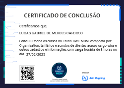 A Trilha CW1 MDM é mais um Badge do programa de certificação da Asia Shipping. Com ela você terá a oportunidade de conhecer melhor sobre as demandas do MDM na Asia Shipping, como ter mais detalhes dos procedimentos de cadastro, com suas etapas e definições.