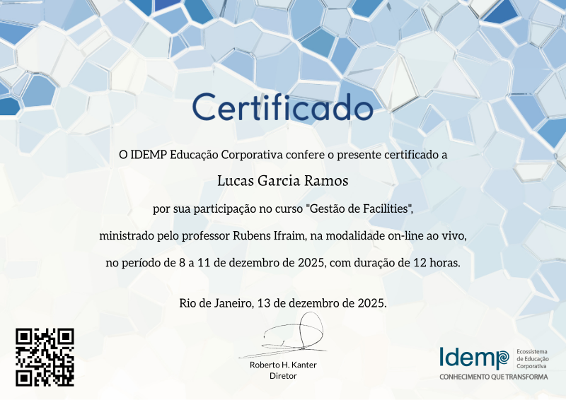 Ao longo do curso, você se desenvolverá os conhecimentos no perfil do novo profissional de facilities, como que essa área se relaciona dentro do contexto das organizações de qualquer tamanho, tanto publicas como privadas.
