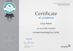 Awarded for completing the Understanding the Child CPD course from Anspear.