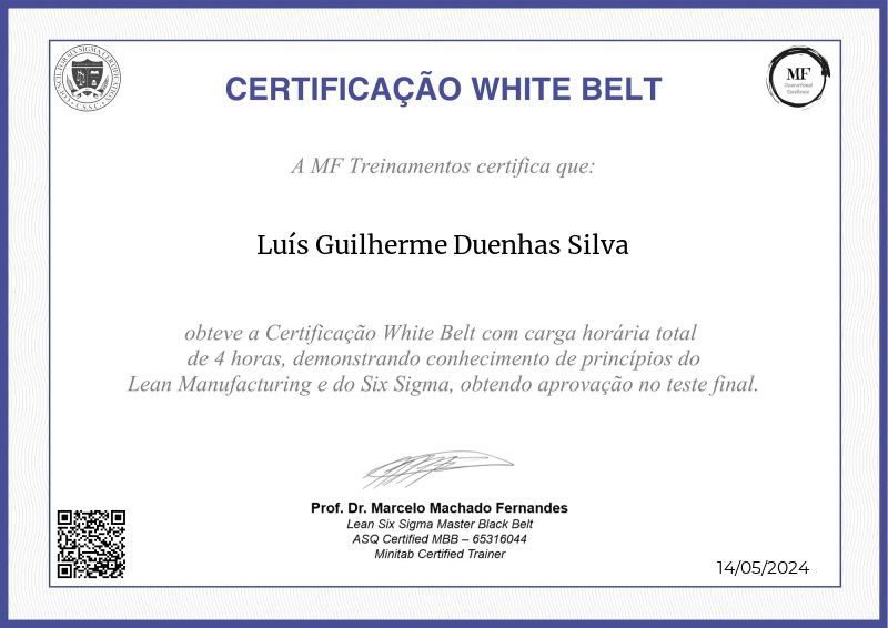 Desbloqueando os princípios fundamentais do Lean Six Sigma, a certificação White Belt oferecida pela MF OPEX, liderada pelo Professor Marcelo Fernandes, destaca-se como um farol de excelência em treinamento operacional. Através de um currículo abrangente que combina teoria com aplicação prática, os participantes adquirem insights inestimáveis sobre redução de desperdícios, gestão de variação e melhoria contínua. A expertise do Professor Fernandes infunde o programa com práticas líderes do setor, equipando os aprendizes com o conhecimento e as habilidades necessárias para impulsionar melhorias tangíveis dentro de suas organizações. Servindo como catalisador para o crescimento profissional, esta certificação abre caminho para avanços adicionais no campo da excelência operacional, capacitando os indivíduos a se tornarem agentes de mudança positiva em suas respectivas indústrias.