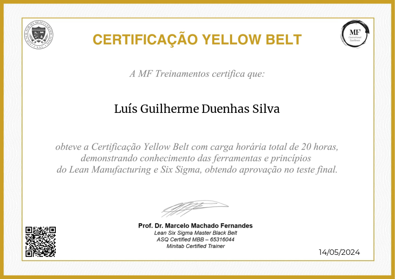 Adentrando nos princípios intermediários do Lean Six Sigma, a certificação Yellow Belt oferecida pela MF OPEX, sob a orientação do Professor Marcelo Fernandes, marca um avanço significativo no treinamento de excelência operacional. Através de um currículo meticulosamente estruturado que mescla teorias avançadas com aplicação prática, os participantes aprofundam seu entendimento em otimização de processos, análise avançada de dados e liderança de projetos. A renomada expertise do Professor Fernandes enriquece o programa com metodologias de ponta, capacitando os aprendizes a liderar melhorias impactantes dentro de suas organizações. Servindo como um marco pivotal no desenvolvimento profissional, esta certificação não apenas abre portas para projetos em maior escala, mas também cultiva a confiança e habilidades necessárias para impulsionar mudanças transformadoras em diversos setores da indústria.