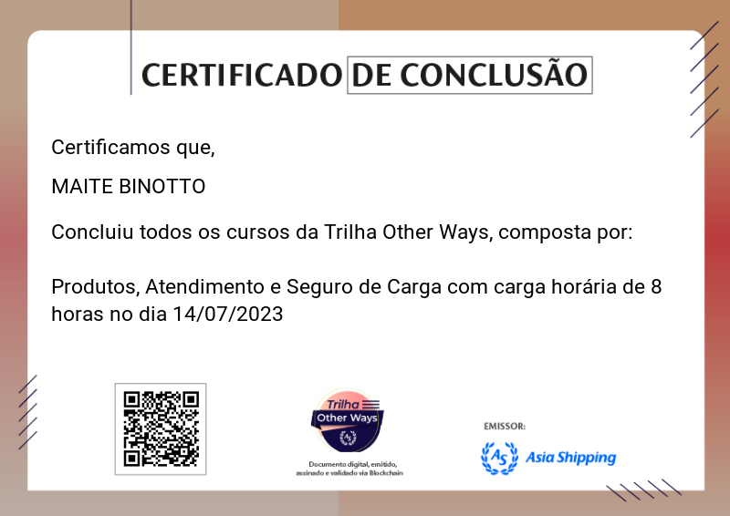 Para receber este badge foi necessário que o colaborador concluísse todas as etapas da Trilha Other Ways em tempo hábil atingindo nota mínima de 8.0 nos testes de conhecimento aplicados.