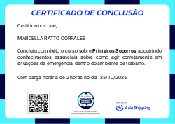 Esta badge digital certifica a conclusão do Treinamento de Primeiros Socorros da Asia Shipping, demonstrando um compromisso proativo com a segurança e a saúde de todos no ambiente de trabalho.