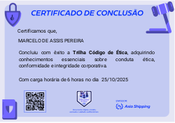 Este badge certifica a conclusão da Trilha Código de Ética. Atesta conhecimento em conduta íntegra, conformidade legal (LGPD, SGSI), anticorrupção e processos de investigação interna, essenciais para a organização.
